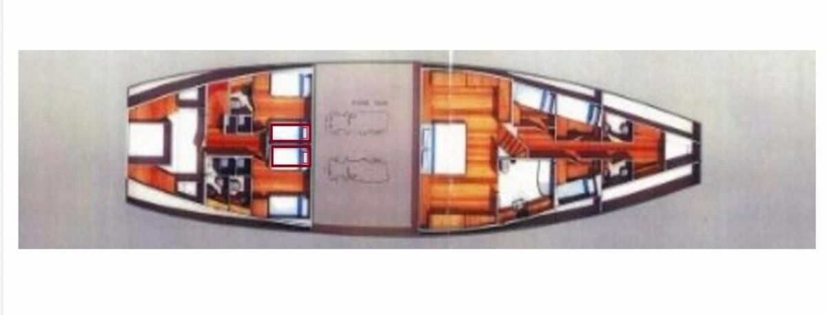 Captain + 4 crew in 3 cabins in the lower foredeck